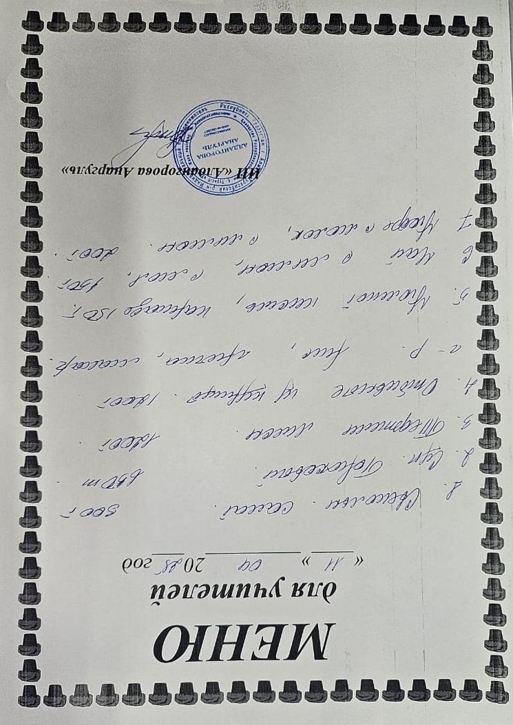 » Ақылы ыстық тамақ мәзірі / Меню платного горячего питания