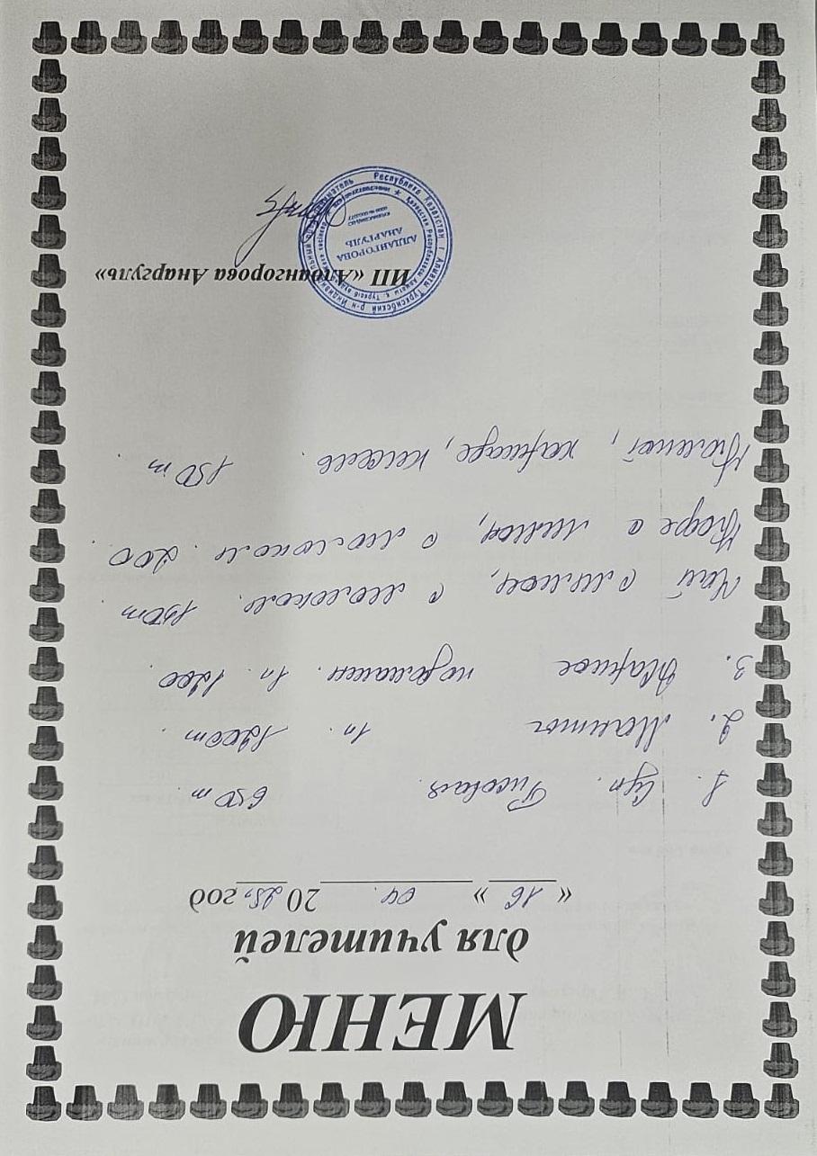 » Ақылы ыстық тамақ мәзірі / Меню платного горячего питания