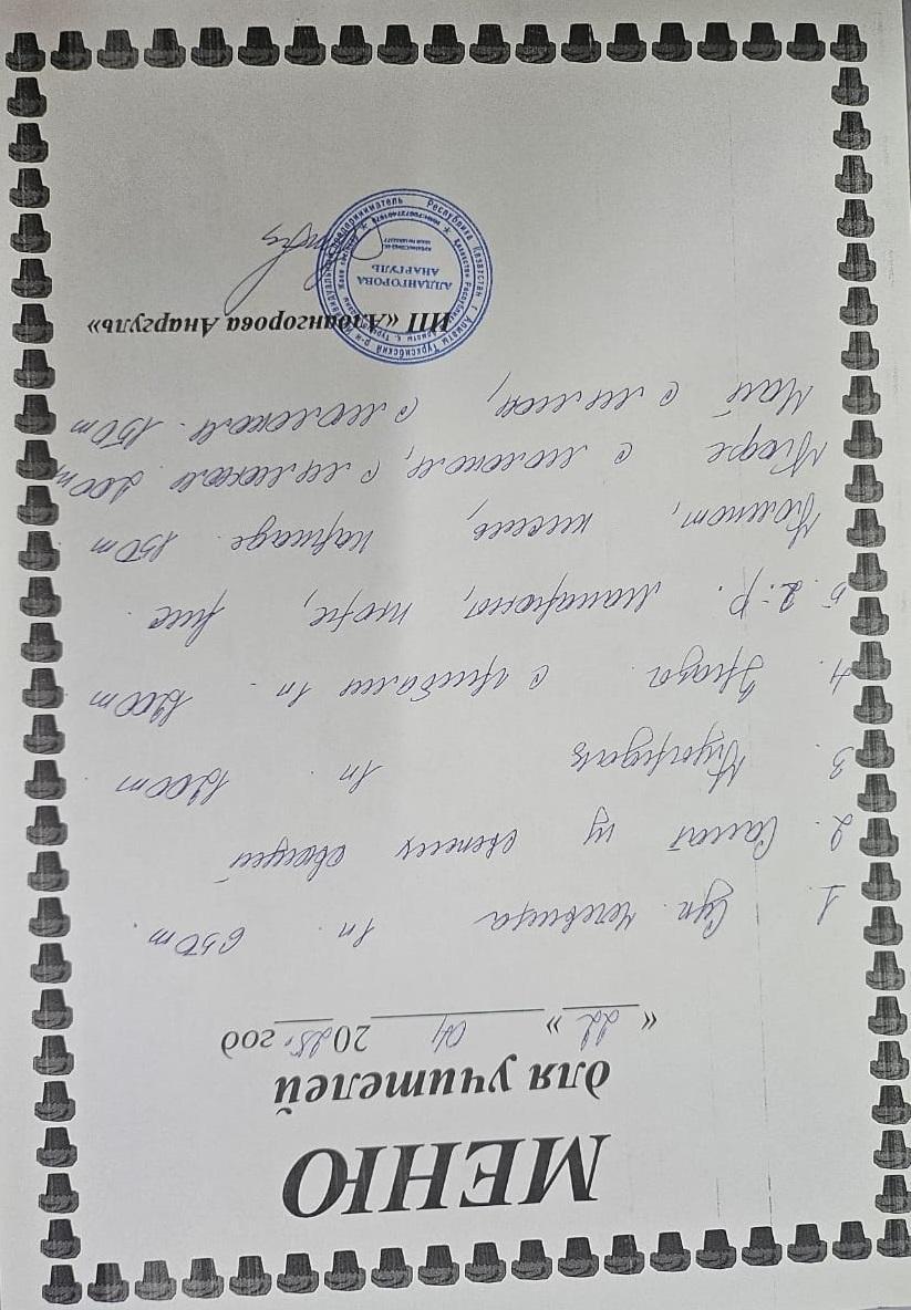 Ақылы ыстық тамақ мәзірі / Меню платного горячего питания