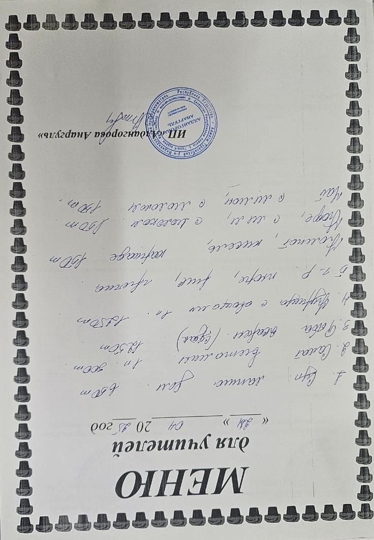 » Ақылы ыстық тамақ мәзірі / Меню платного горячего питания