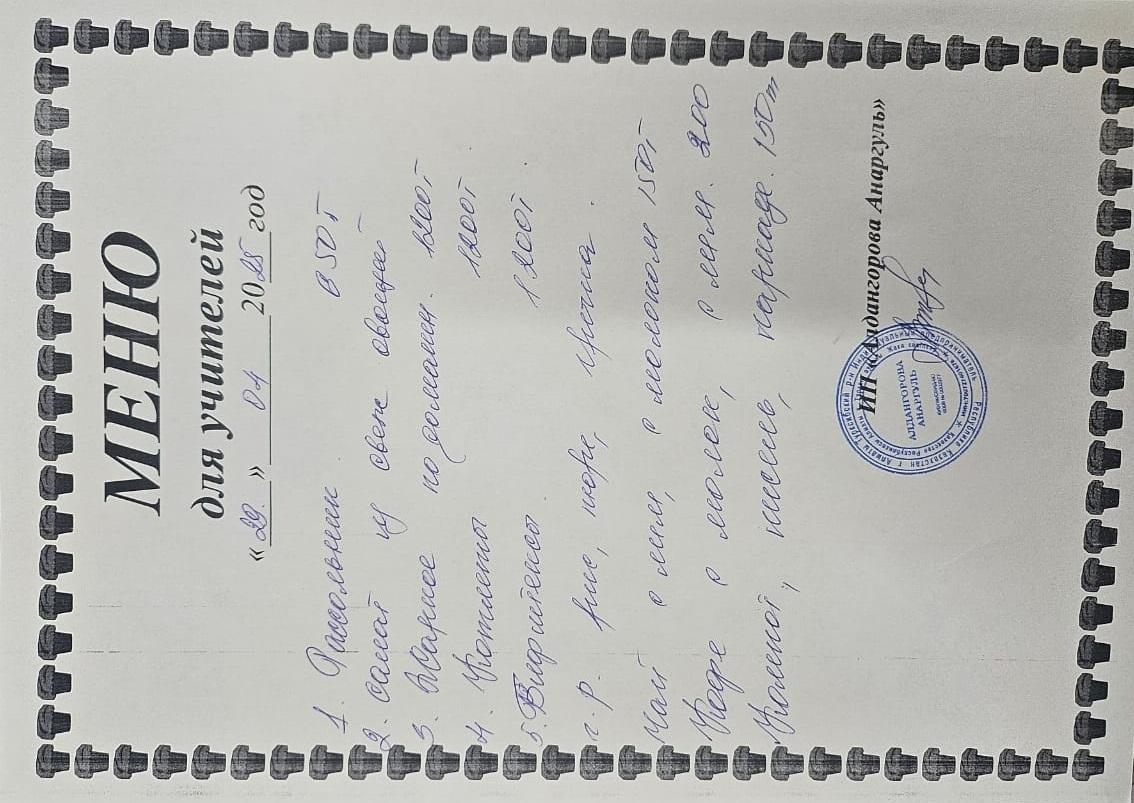 » Ақылы ыстық тамақ мәзірі / Меню платного горячего питания