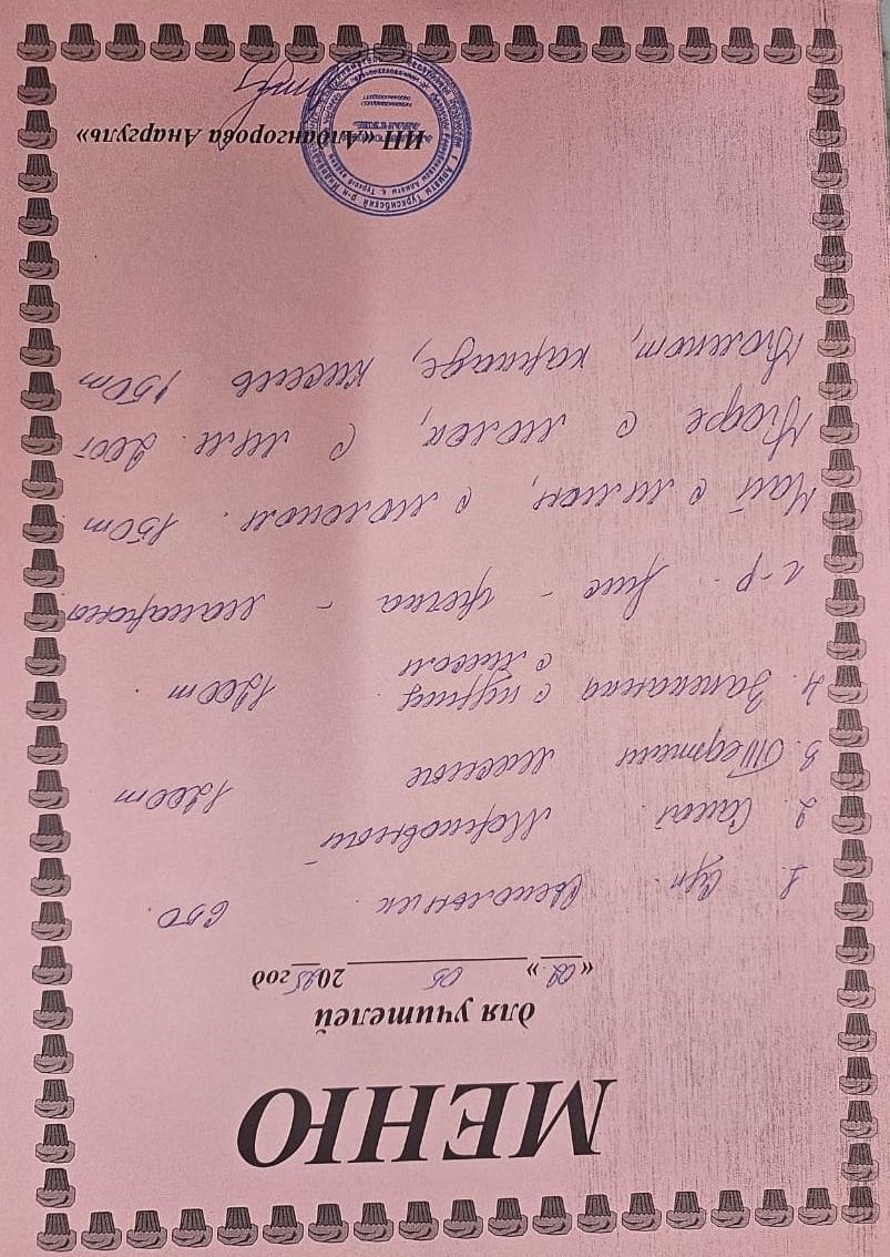 » Ақылы ыстық тамақ мәзірі / Меню платного горячего питания