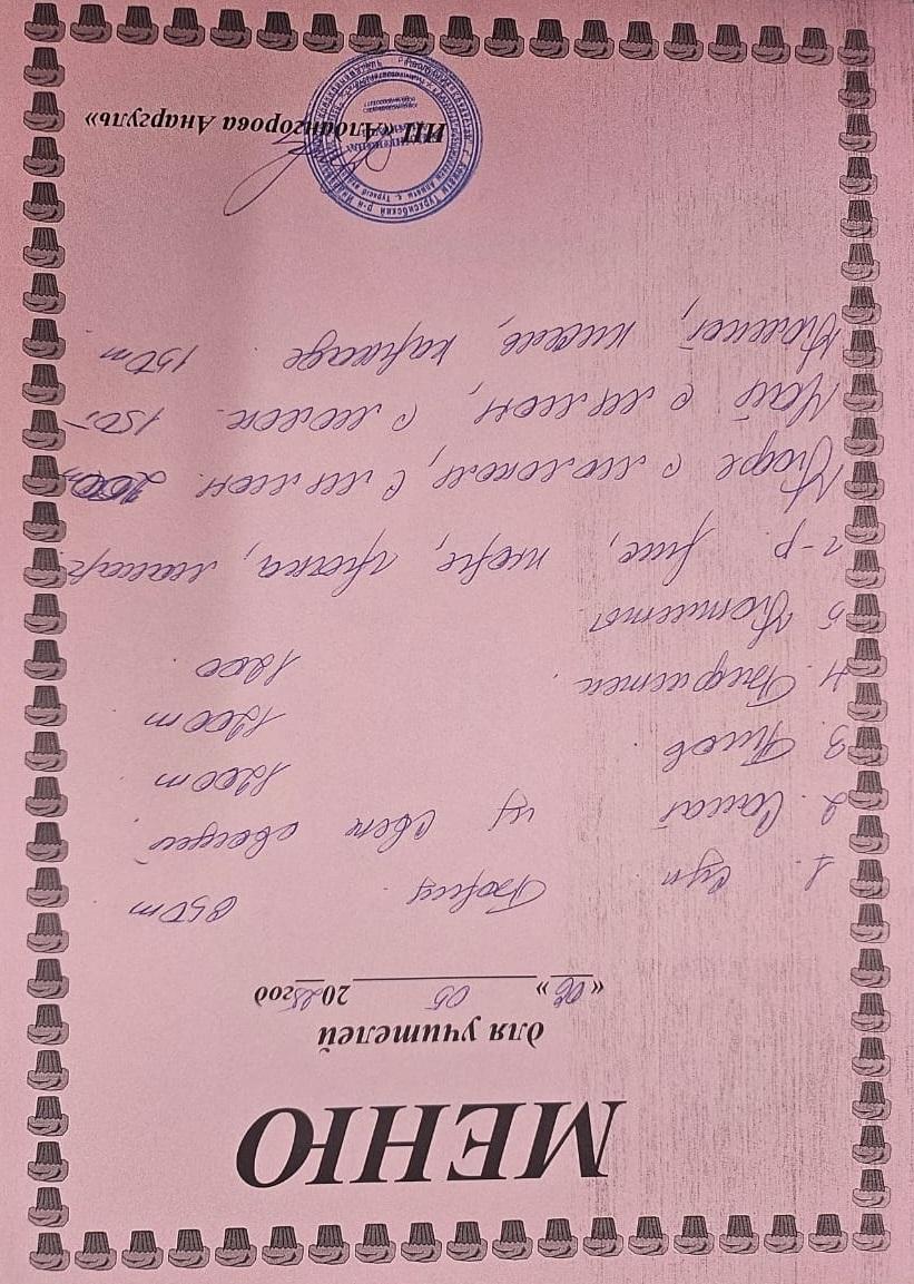 » Ақылы ыстық тамақ мәзірі / Меню платного горячего питания