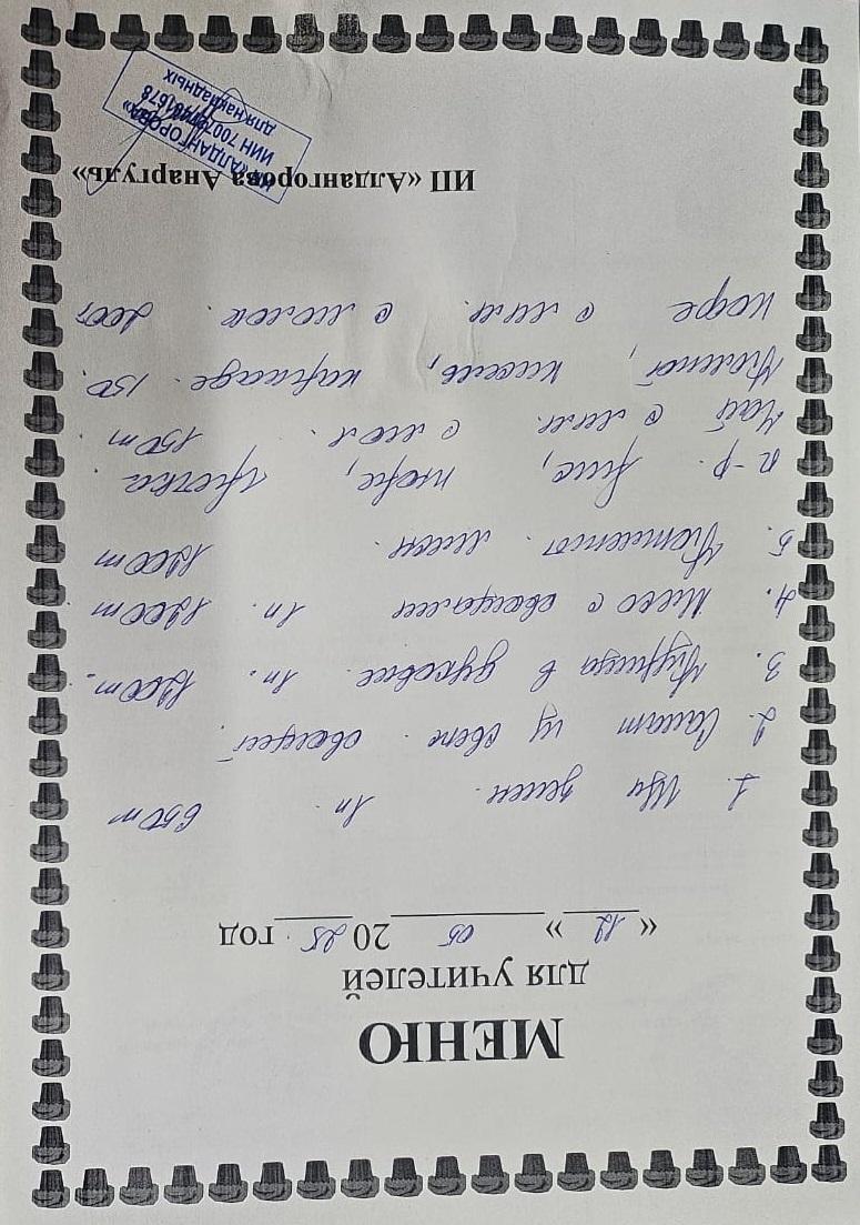 » Ақылы ыстық тамақ мәзірі / Меню платного горячего питания