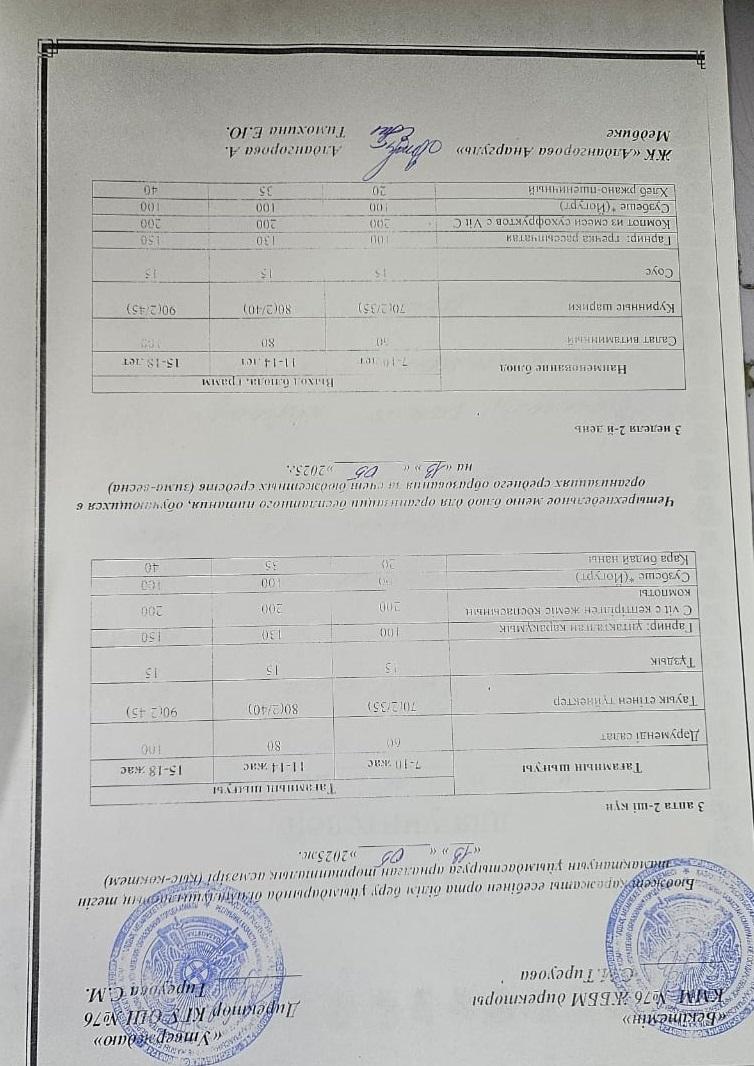 13 май 2025 0 1 2 3 4 5 1-4 сынып, 5-11 сынып ХӘОТ мәзірі. Қыс- көктем 2025 жыл. / Меню 1-4 кл, 5-11 кл СУСН. Зима-весна 2025.