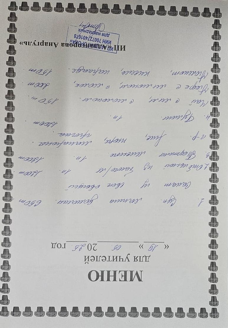 » Ақылы ыстық тамақ мәзірі / Меню платного горячего питания