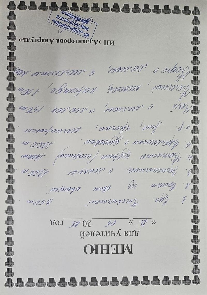 » Ақылы ыстық тамақ мәзірі / Меню платного горячего питания