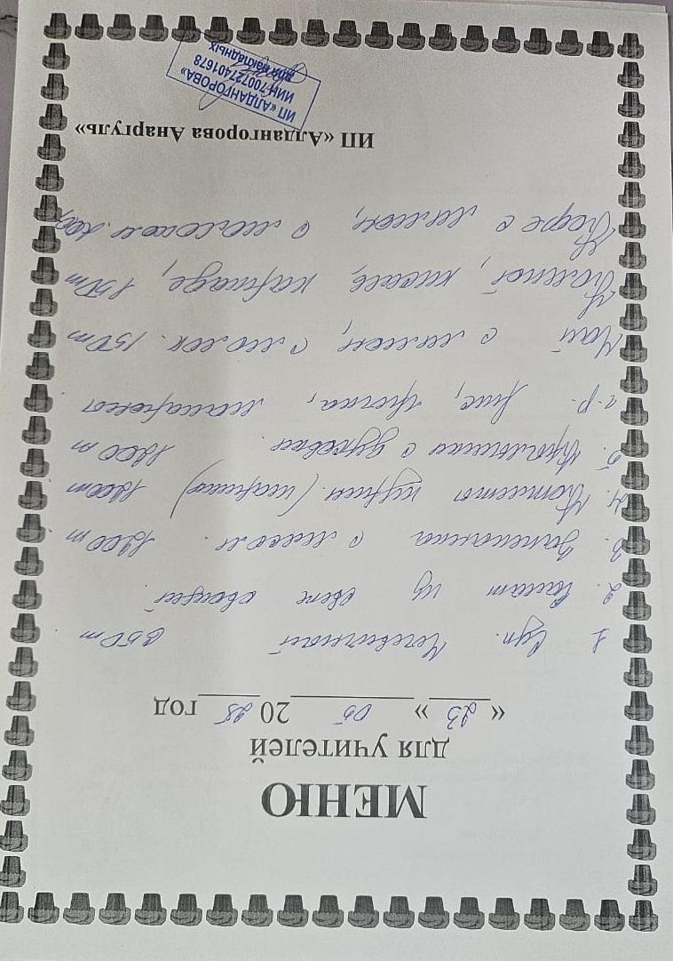 » Ақылы ыстық тамақ мәзірі / Меню платного горячего питания
