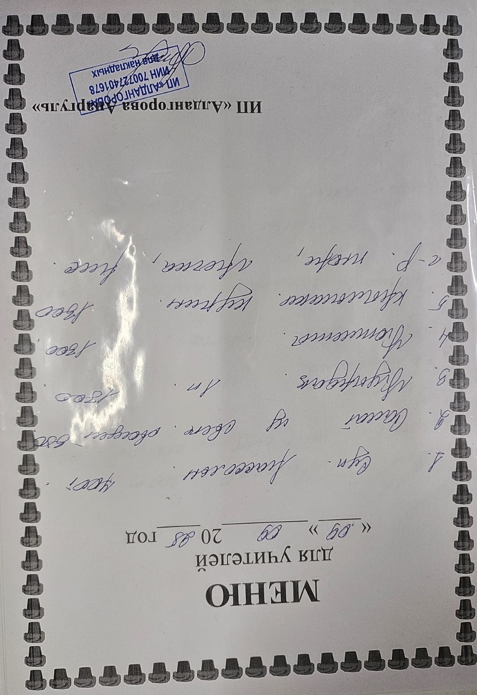 » Ақылы ыстық тамақ мәзірі / Меню платного горячего питания