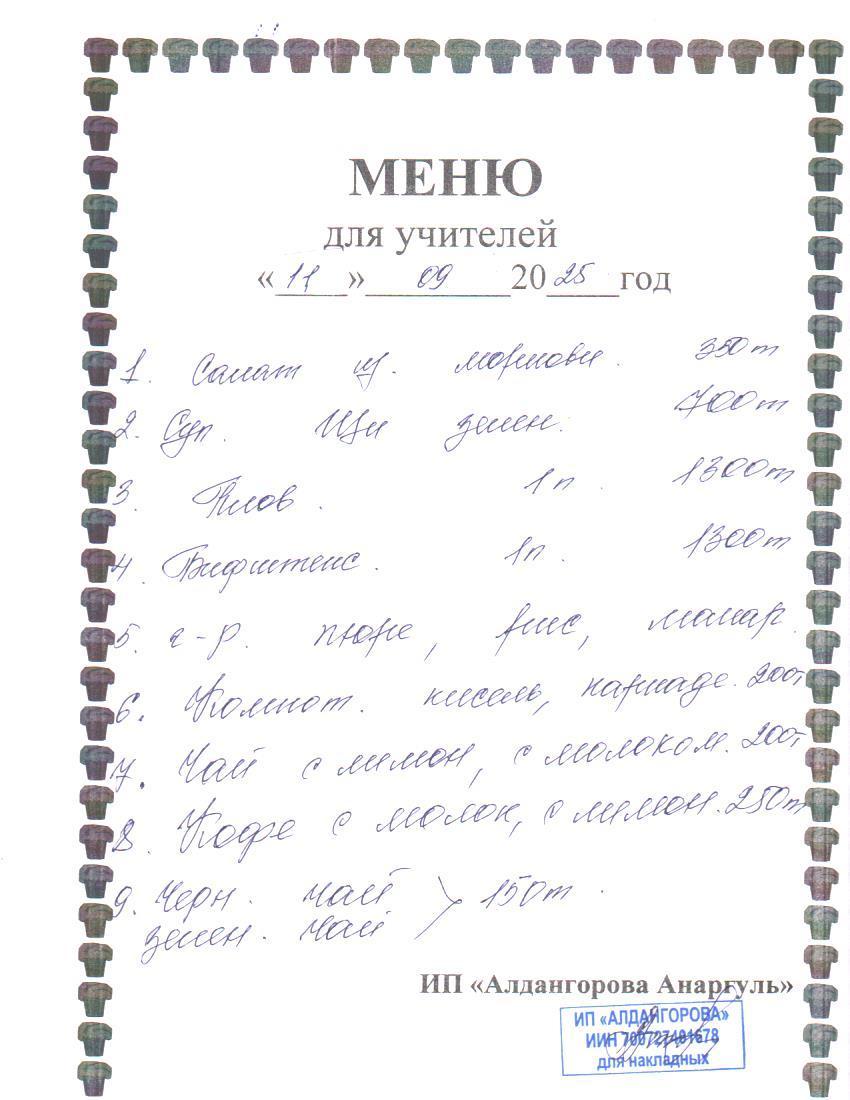 » Ақылы ыстық тамақ мәзірі / Меню платного горячего питания