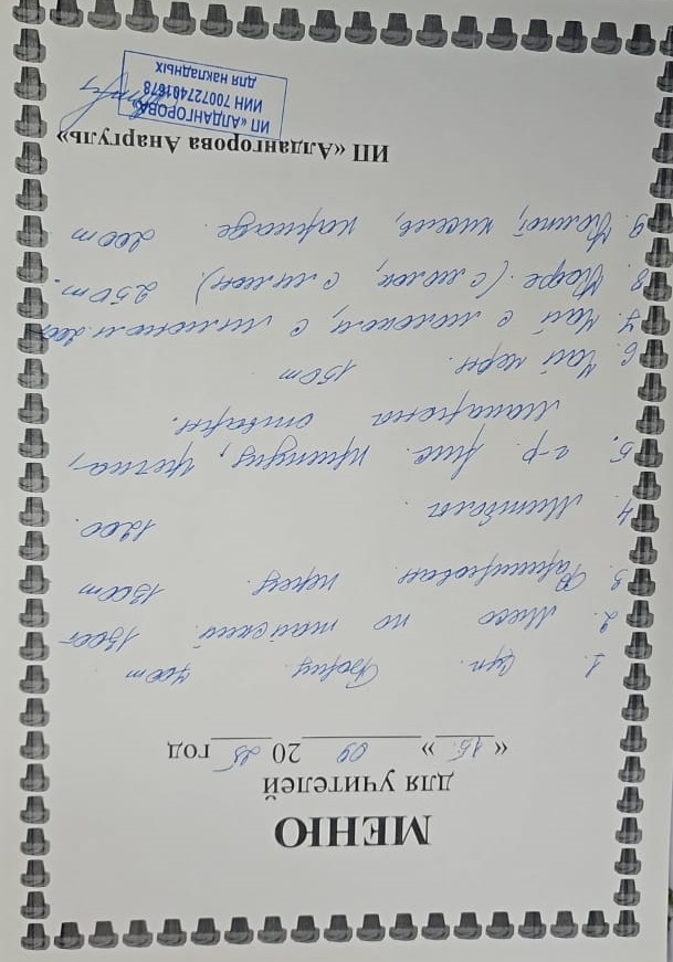 Ақылы ыстық тамақ мәзірі / Меню платного горячего питания