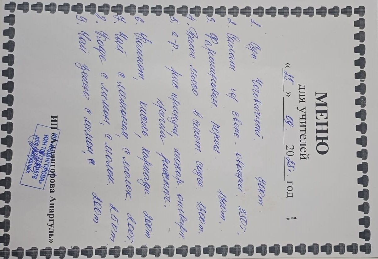 » Ақылы ыстық тамақ мәзірі / Меню платного горячего питания