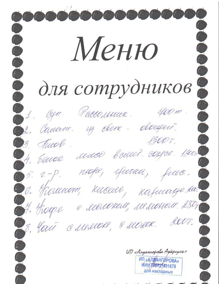 » Ақылы ыстық тамақ мәзірі / Меню платного горячего питания