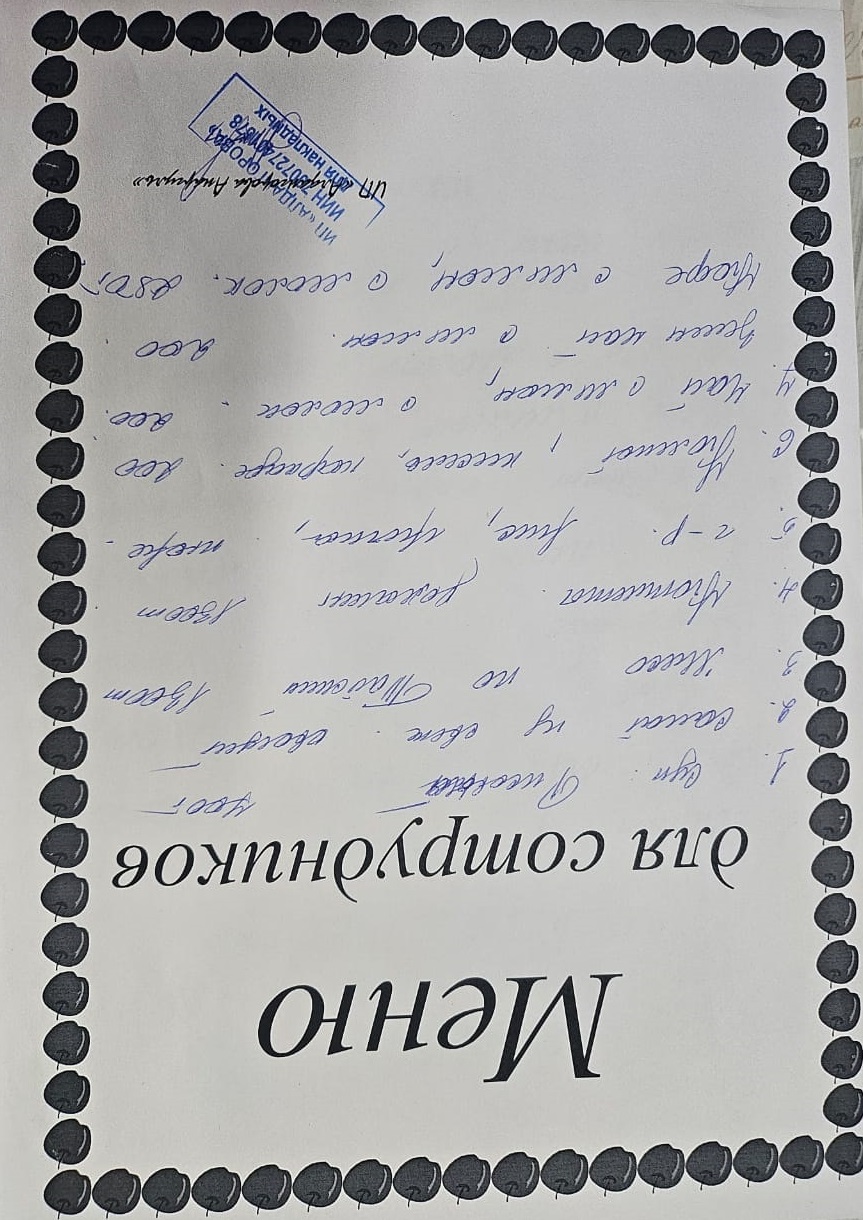 » Ақылы ыстық тамақ мәзірі / Меню платного горячего питания