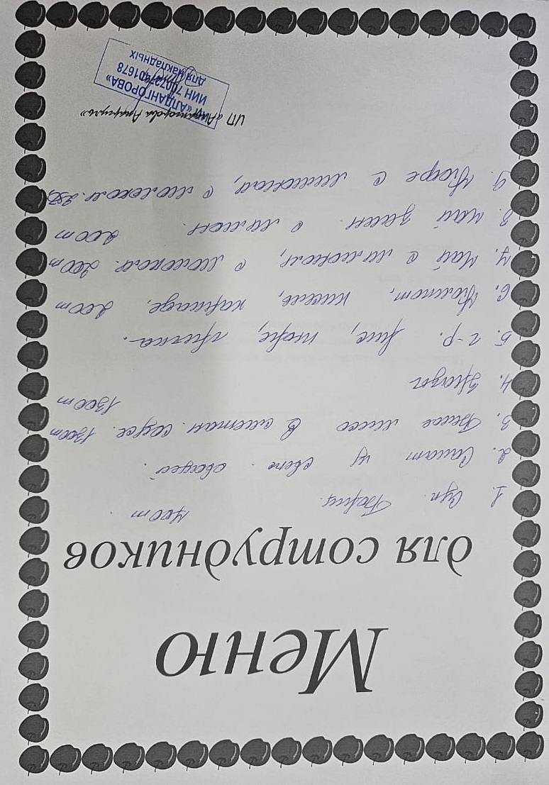 » Ақылы ыстық тамақ мәзірі / Меню платного горячего питания