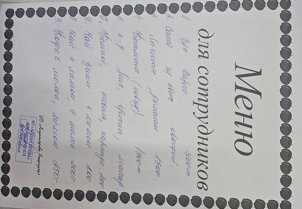» Ақылы ыстық тамақ мәзірі / Меню платного горячего питания