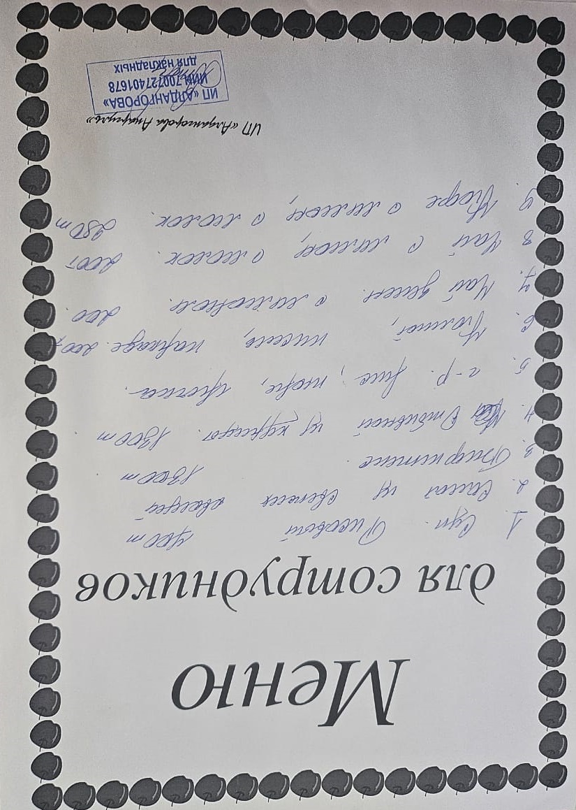 » Ақылы ыстық тамақ мәзірі / Меню платного горячего питания