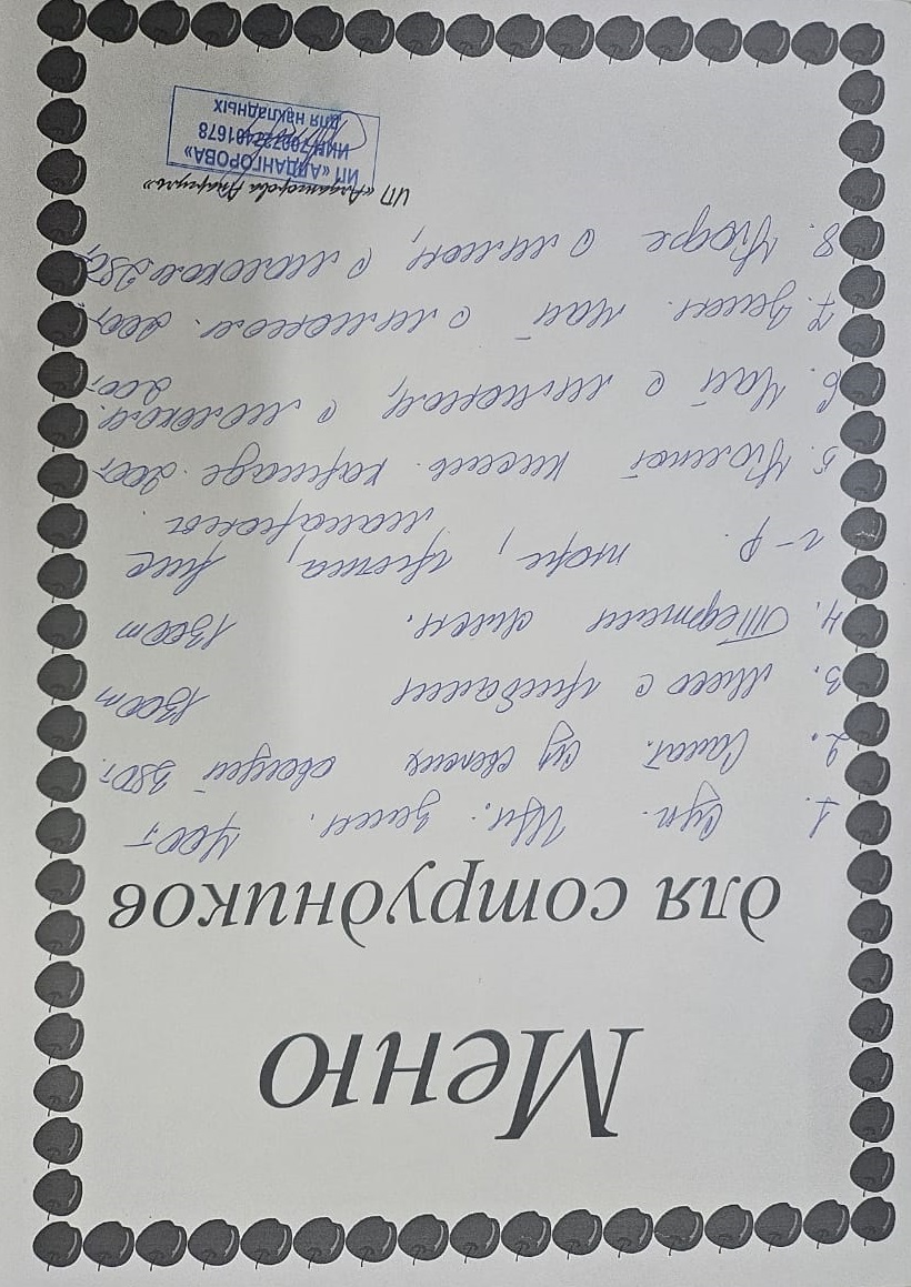 » Ақылы ыстық тамақ мәзірі / Меню платного горячего питания