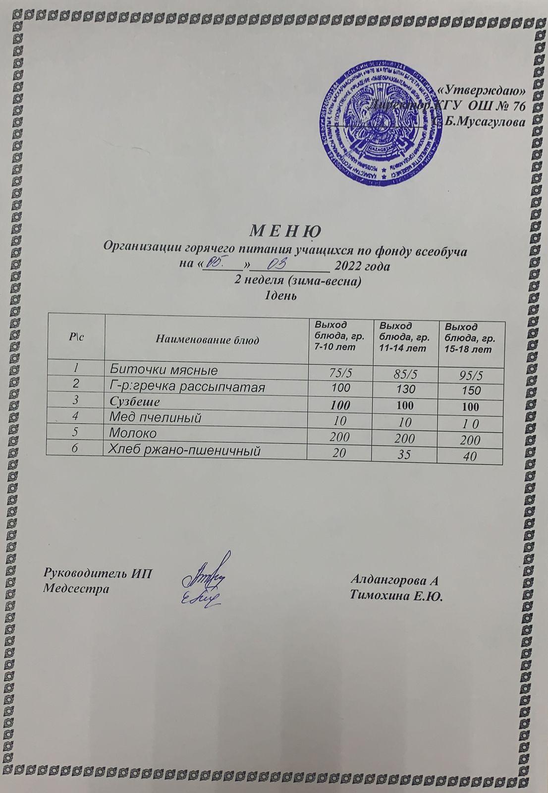 05 март 2022 0 1 2 3 4 5 Жалпы білім беру бойынша ыстық тамақтың күнделікті мәзірі 2 апта (қыс-көктем) 1 күн, Ежедневное меню горячего питания по всеобучу 2 неделя (зима-весна) 1 день