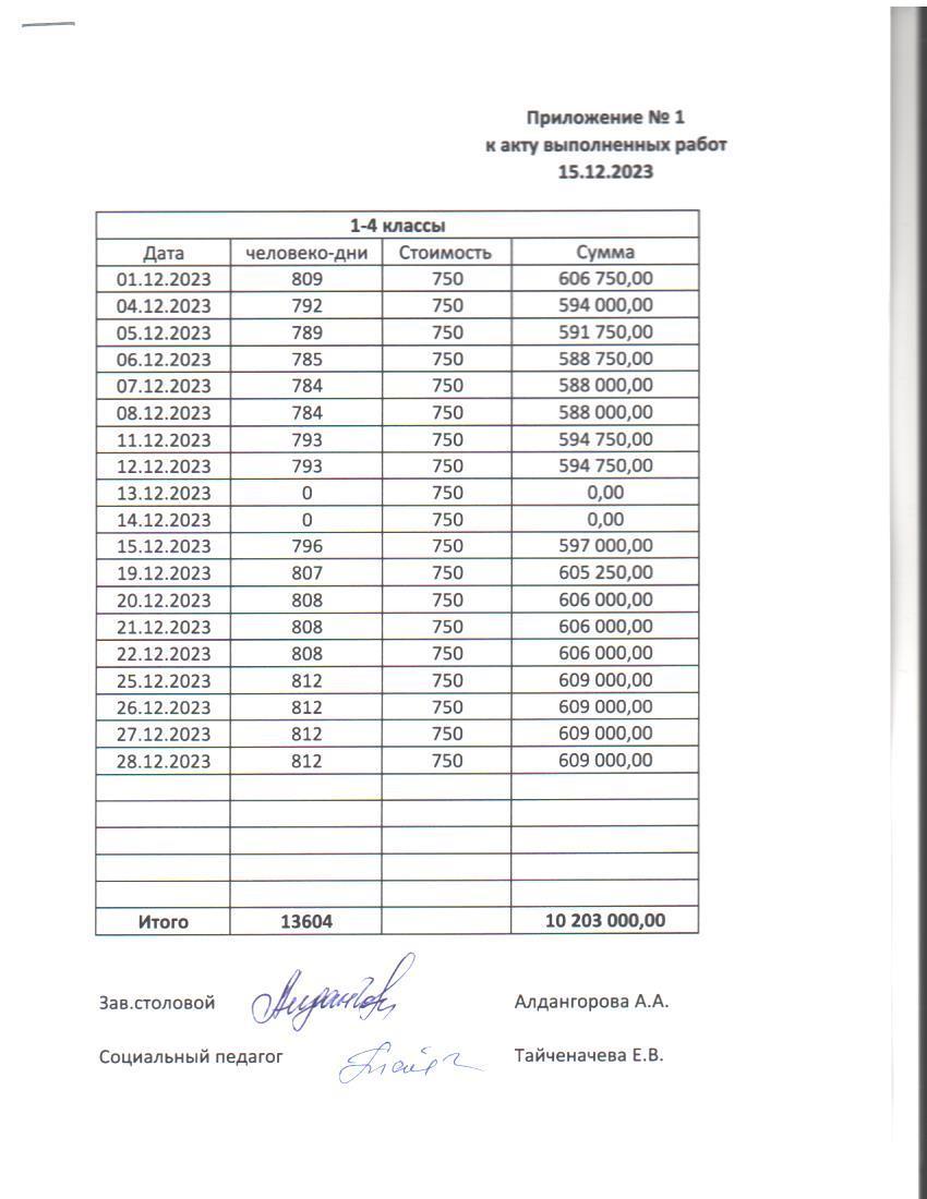 Желтоқсан айындағы тамақтану туралы есеп / Отчет по питанию за декабрь