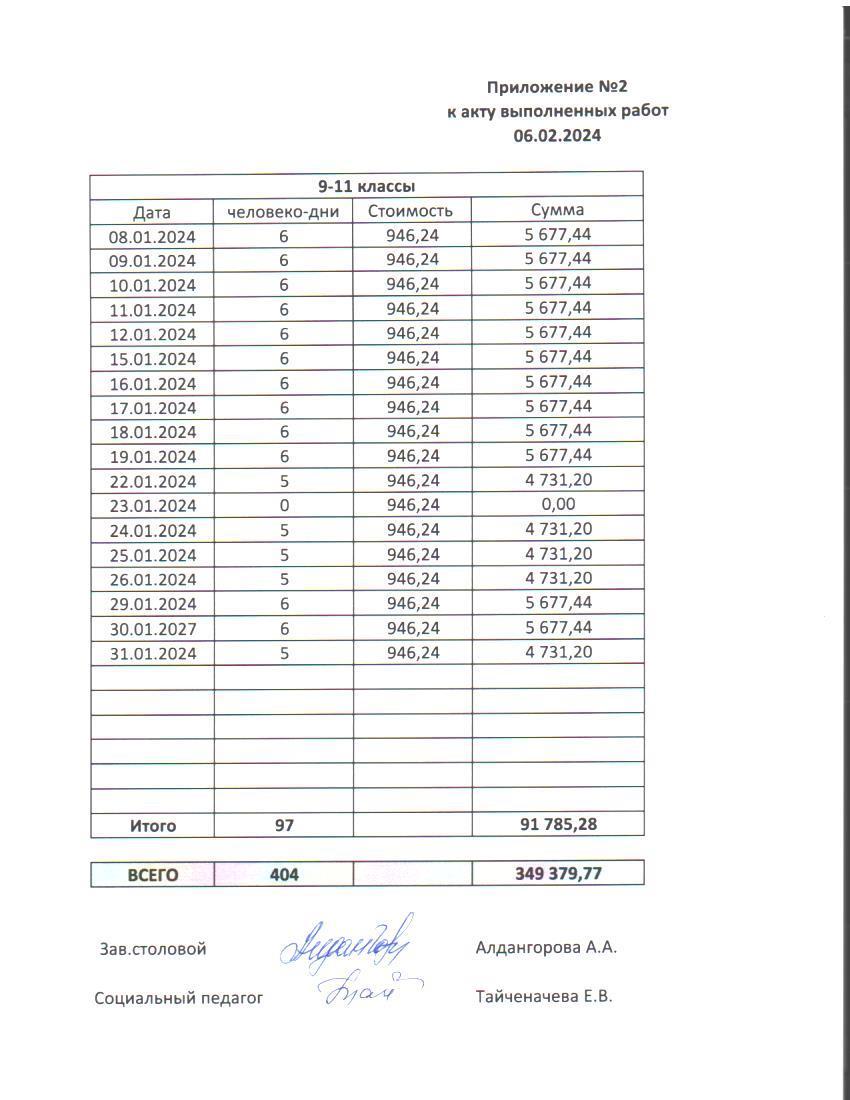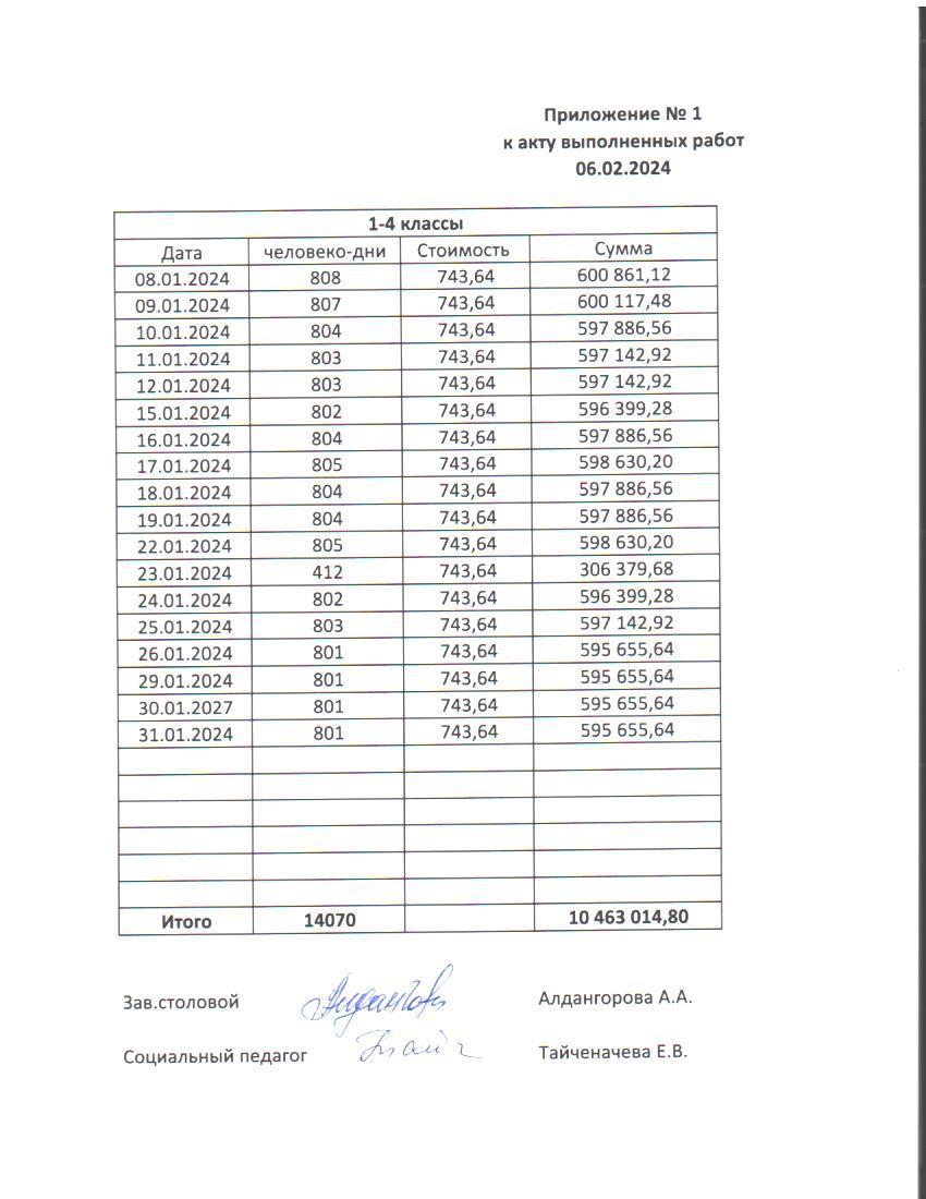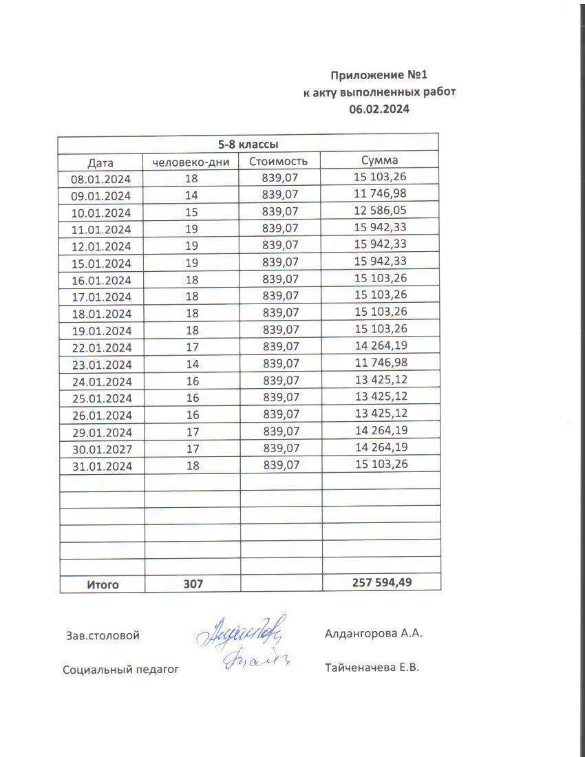 Қаңтар айындағы тамақтану туралы есеп / Отчет по питанию за январь