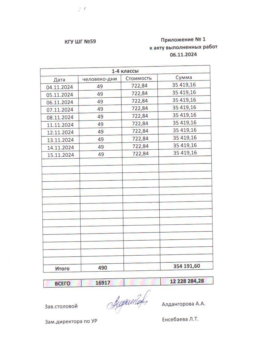 06 ноябрь 2024 0 1 2 3 4 5 Қараша айындағы тамақтану туралы есеп. №59 ЖББМ КММ / Отчет по питанию за ноябрь КГУ ОШ № 59.