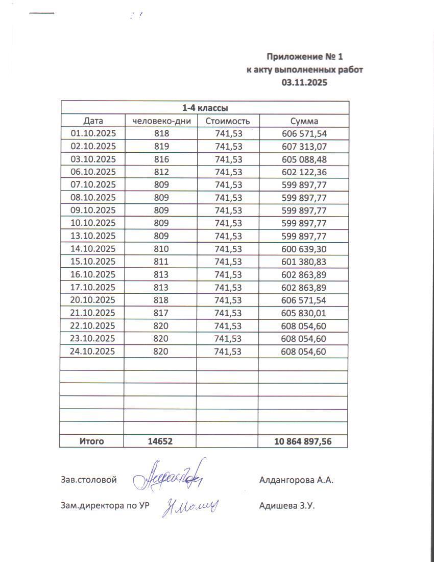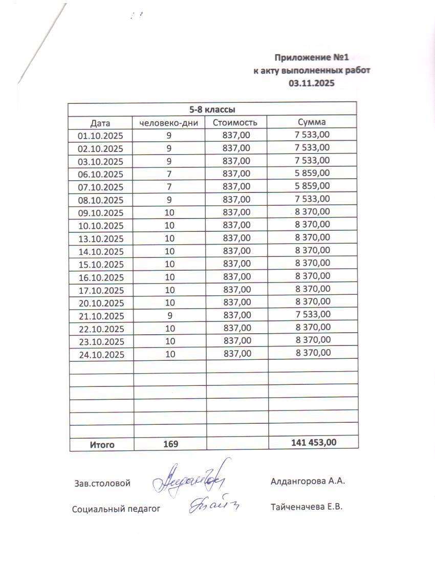 03 ноябрь 2025 0 1 2 3 4 5 Қазан айындағы тамақтану туралы есеп. 1-11 сыныптар. / Отчет по питанию за октябрь. 1-11 классы.