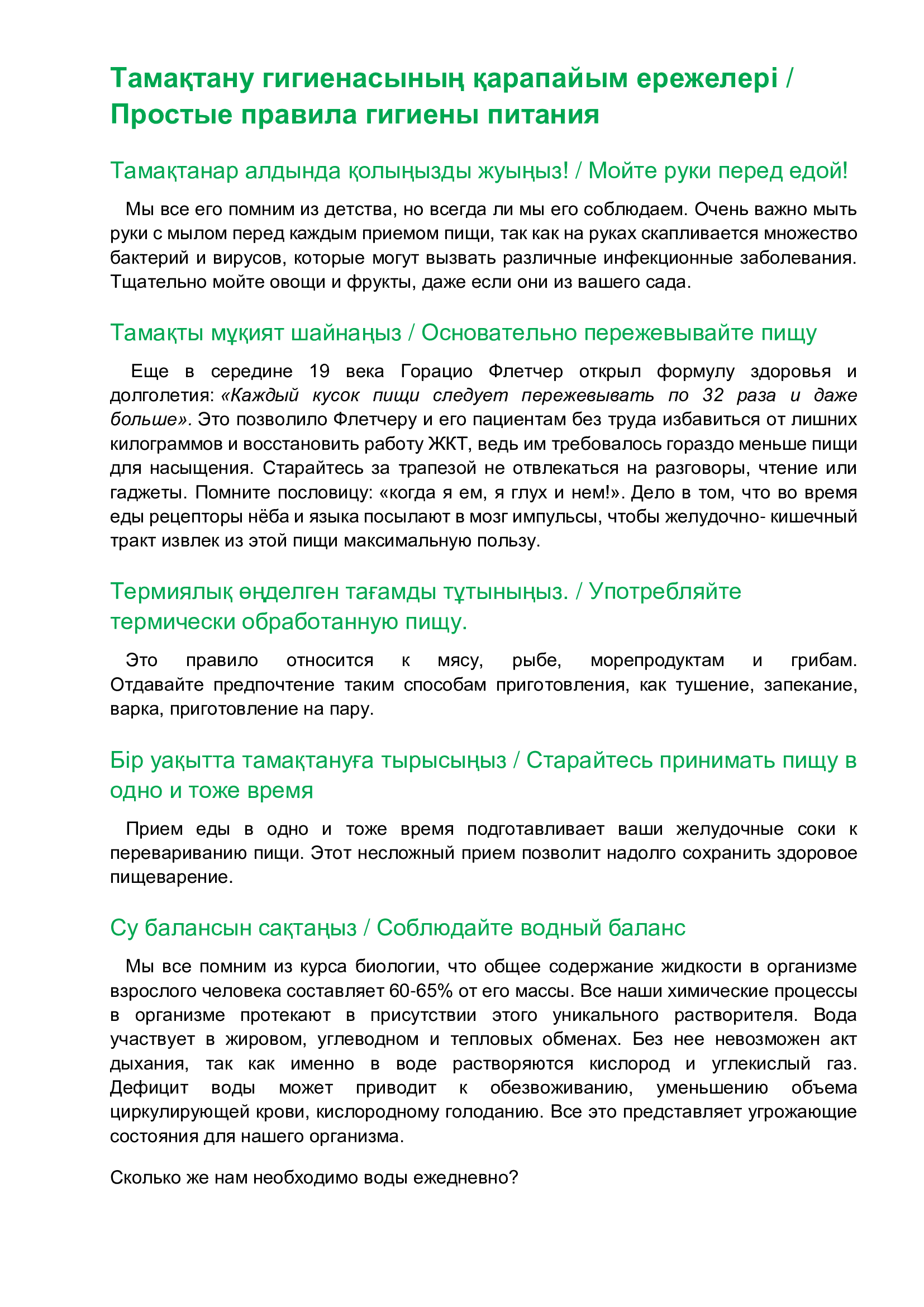 06 ноябрь 2025 0 1 2 3 4 5 Тамақтану гигиенасының қарапайым ережелері / Простые правила гигиены питания