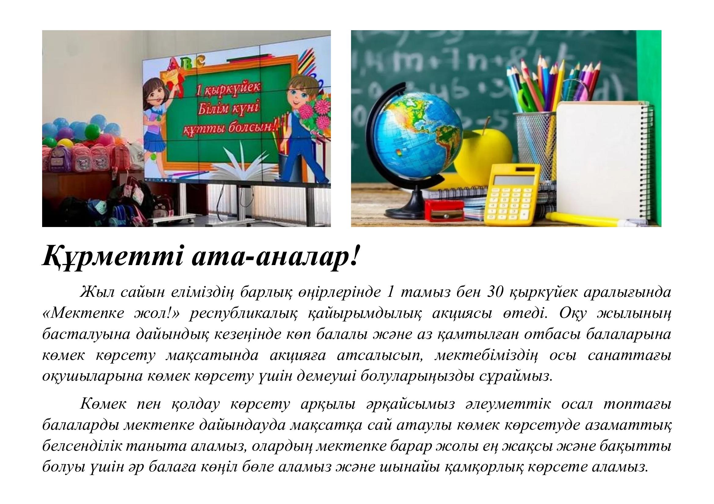 » «Мектепке жол!» АКЦИЯсы / Объявление "АКЦИЯ "Дорога в школу!"