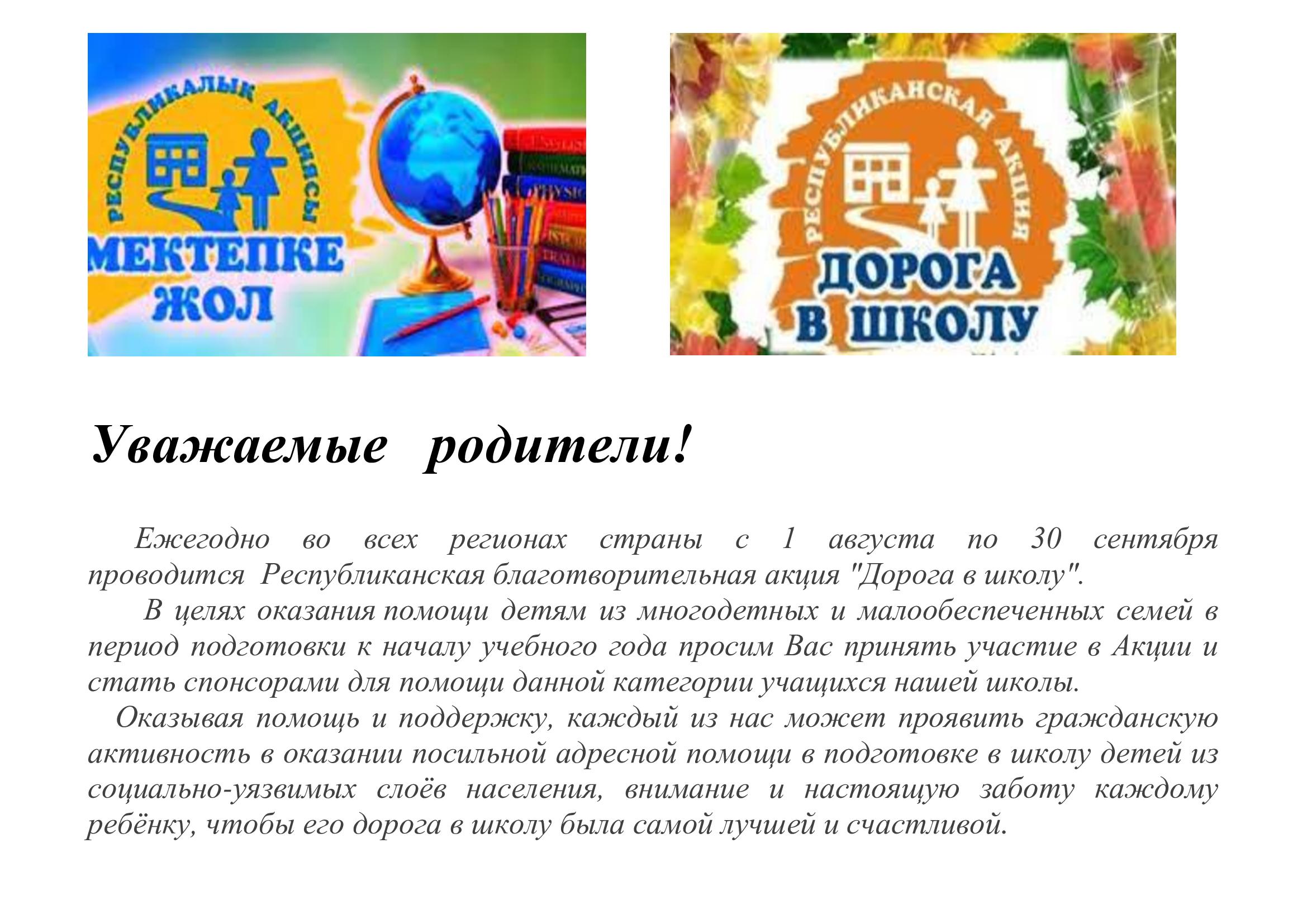 Республикалық акциясы "Мектепке жол" "Дорога в школу"